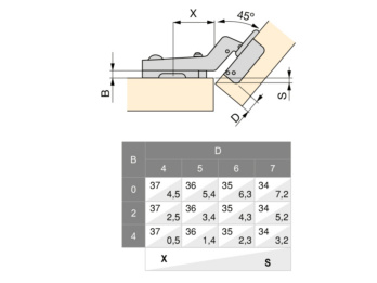 Distance to cup bore edge d = 3 ~ 7 mm.
